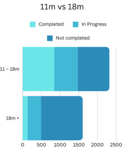 It’s notable that there has been less progress in the higher category building above 18 metres, with 8% at this height having their cladding remediated. This compares to 31% in the 11–18 metres band. In fact these taller high rises have just 69% not yet even started.