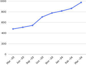 This shows how much work has been done in the past year on cladding remediation. It portrays a gradual rise in remedial activity, with a recent increase after being almost flat over the winter months.